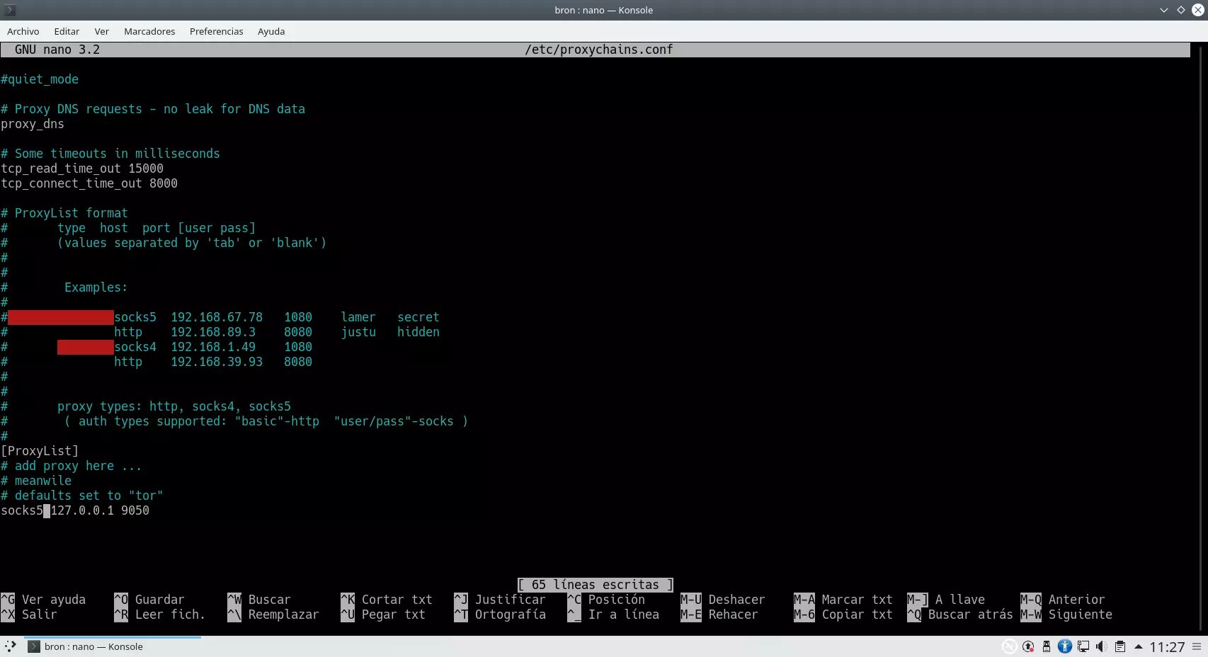 Ahora que ya tenemos activado el servicio de Tor, vamos a realizar la configuración necesaria en Proxychains para salir a Internet haciendo uso de la red Tor