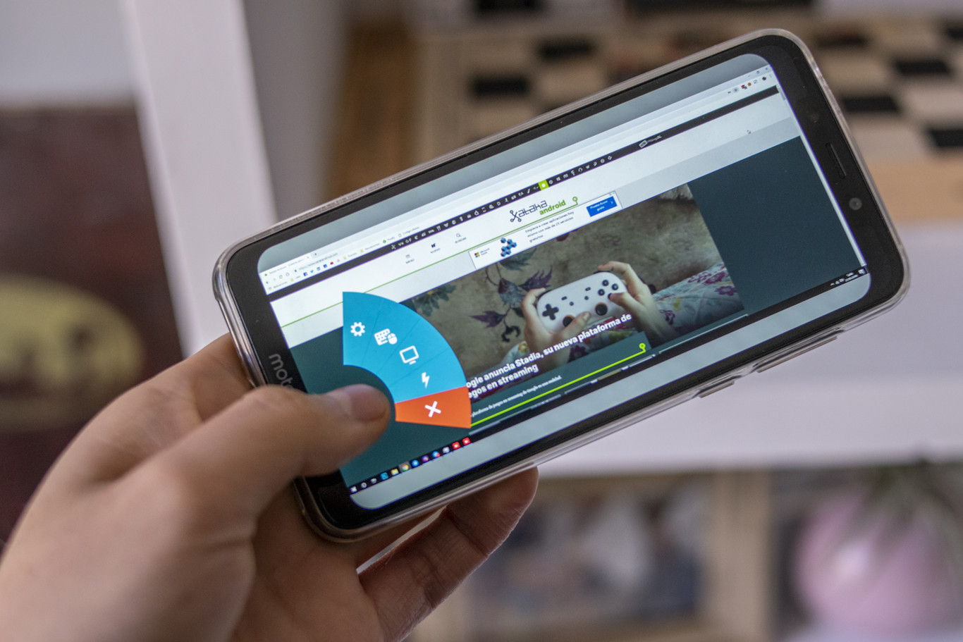Eso es lo básico, pero vayamos más allá. Durante la sesión remota verás que aparece un botón negro con el logo de la aplicación. Si lo dejas pulsado aparecerá un menú de tarta desplegable con diferentes accesos. El primero es de lo ajustes, desde donde podemos modificar la entrada de datos, la calidad del streaming y el sonido. No toques nada, tal y como viene configurado funciona a la perfección.