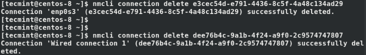 $ nmcli connection delete e3cec54d-e791-4436-8c5f-4a48c134ad29