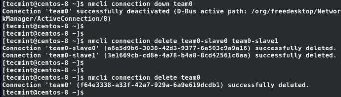 Si desea eliminar la interfaz / enlace de formación de equipos y volver a la configuración de red predeterminada, primero baje el enlace de formación de equipos: